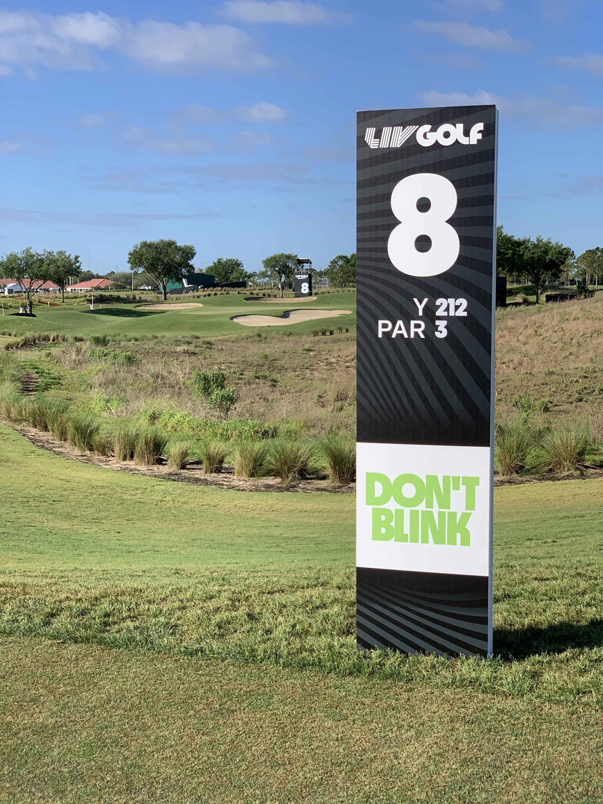 Many of our client’s events demand a one-of-a-kind brand presentation for their sponsors. We have developed multiple signage programs to enhance sponsor logo placement and brand recognition. On-course signage also presents spectators and players with a professional presentation of each hole layout, yardage, and par. We also provide a signage system that clearly identifies where spectators and players can walk from hole to hole.